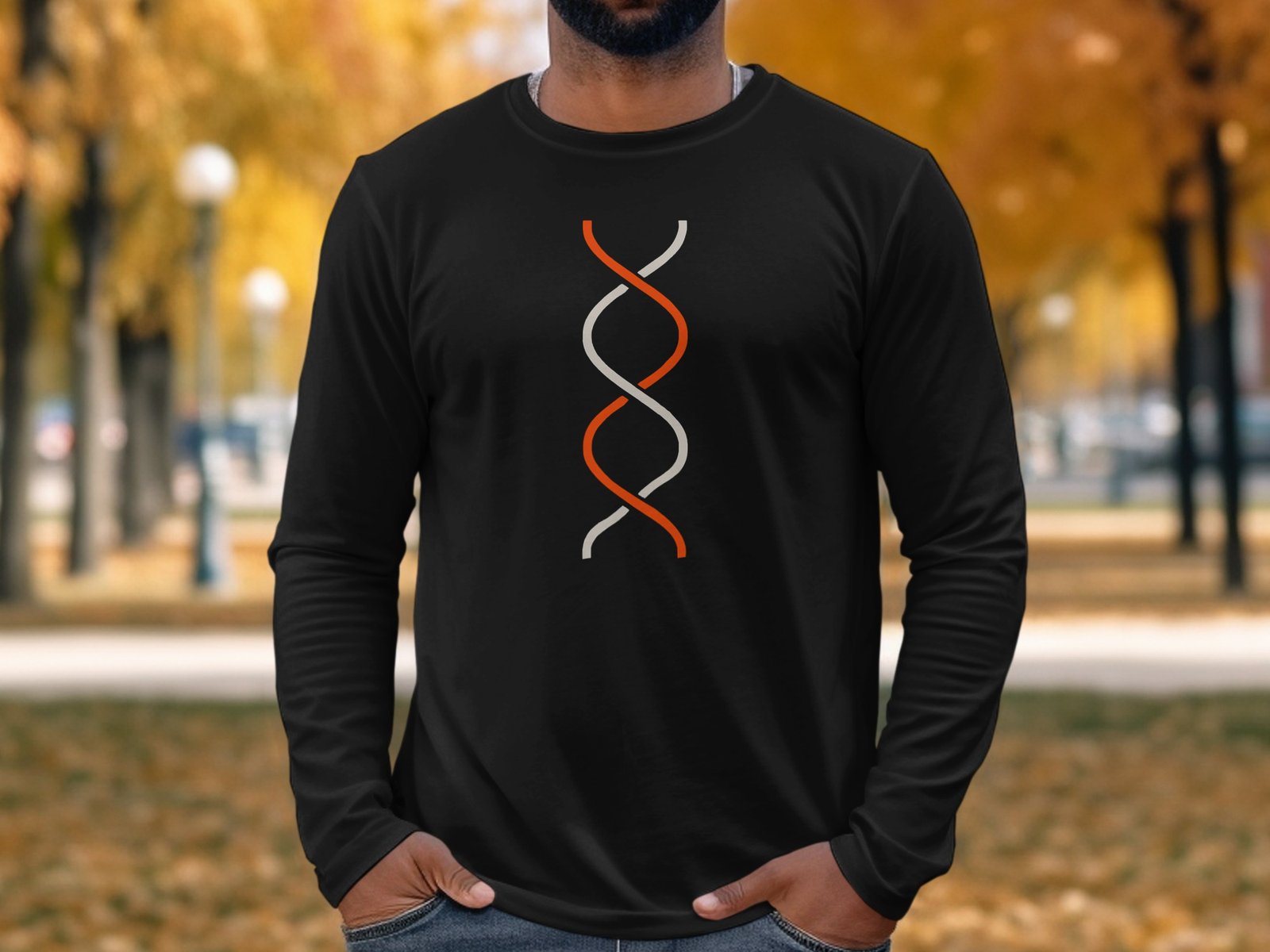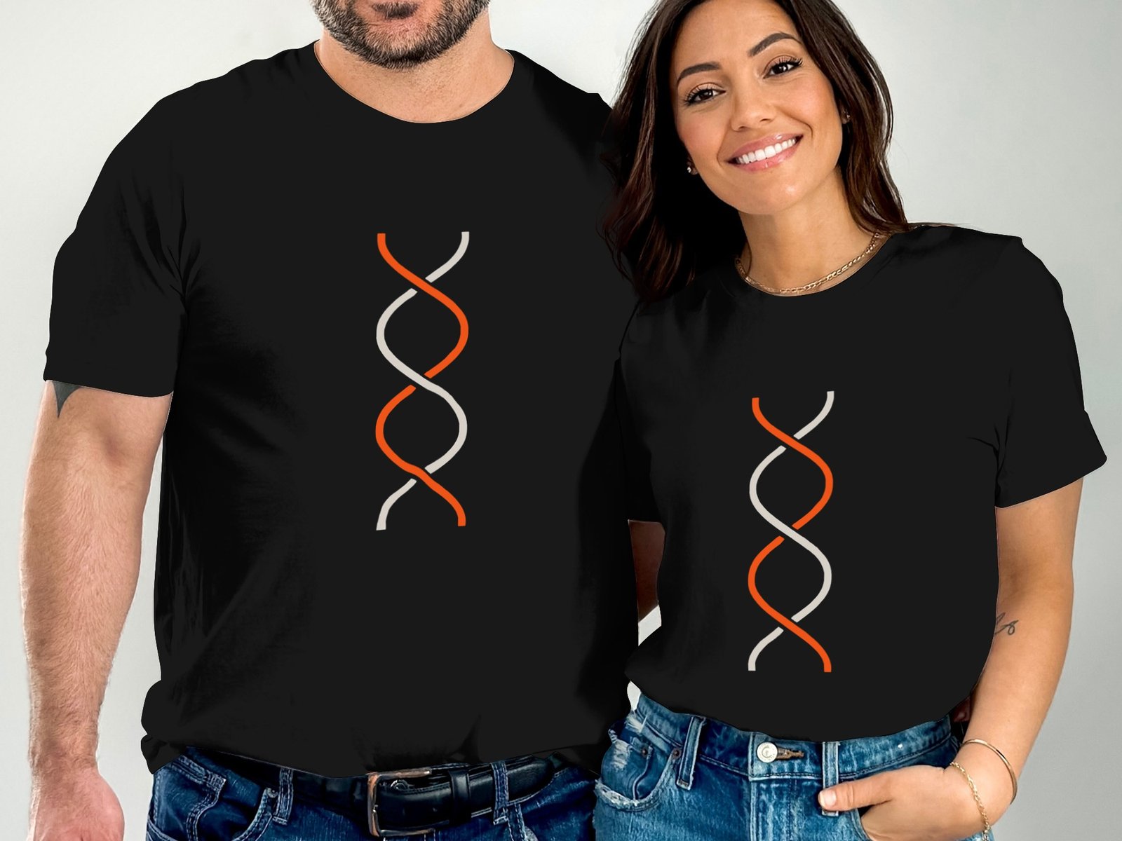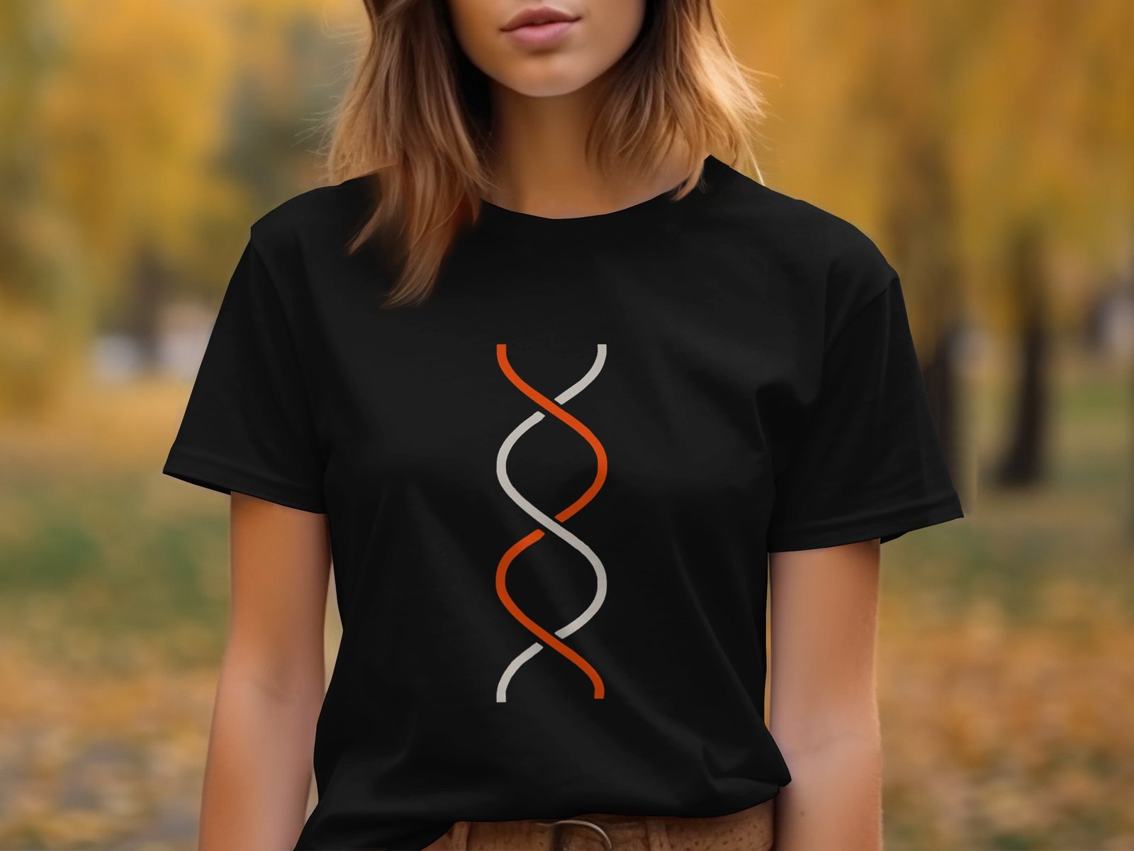 Showcase your unique style with this minimalist double helix design featuring vibrant orange intertwined with sleek gray. Perfect for those who appreciate simple artistry and elegance.