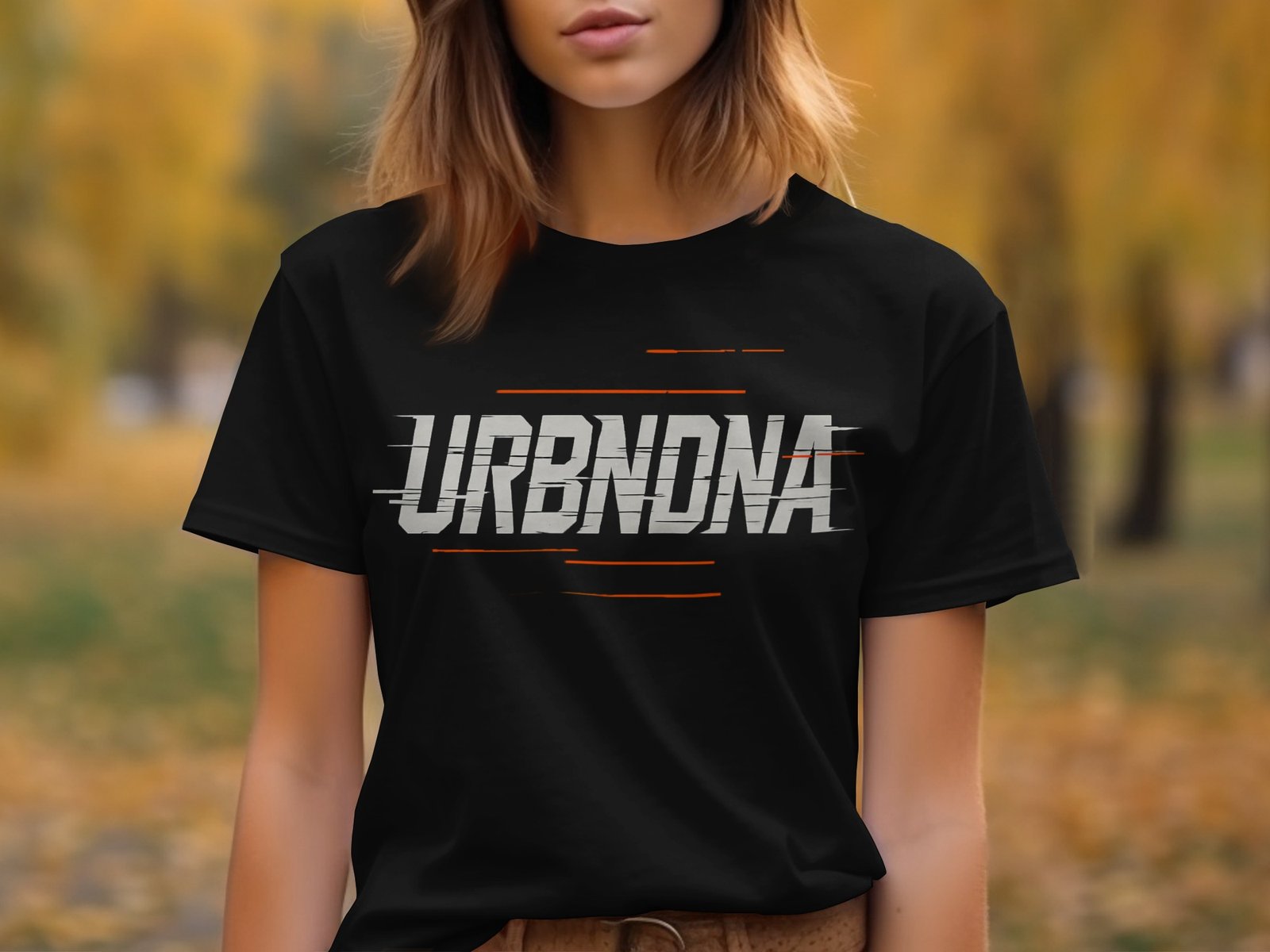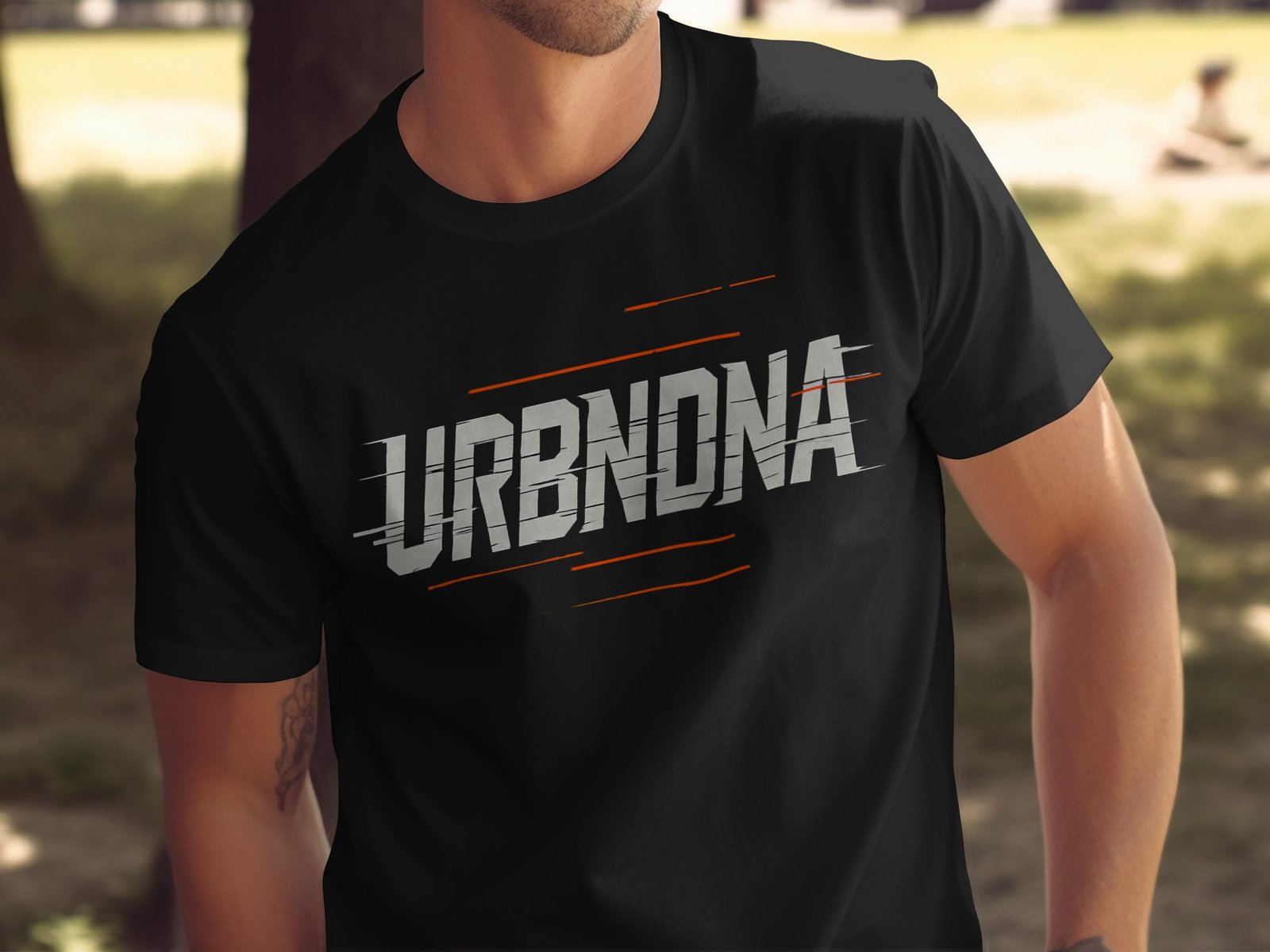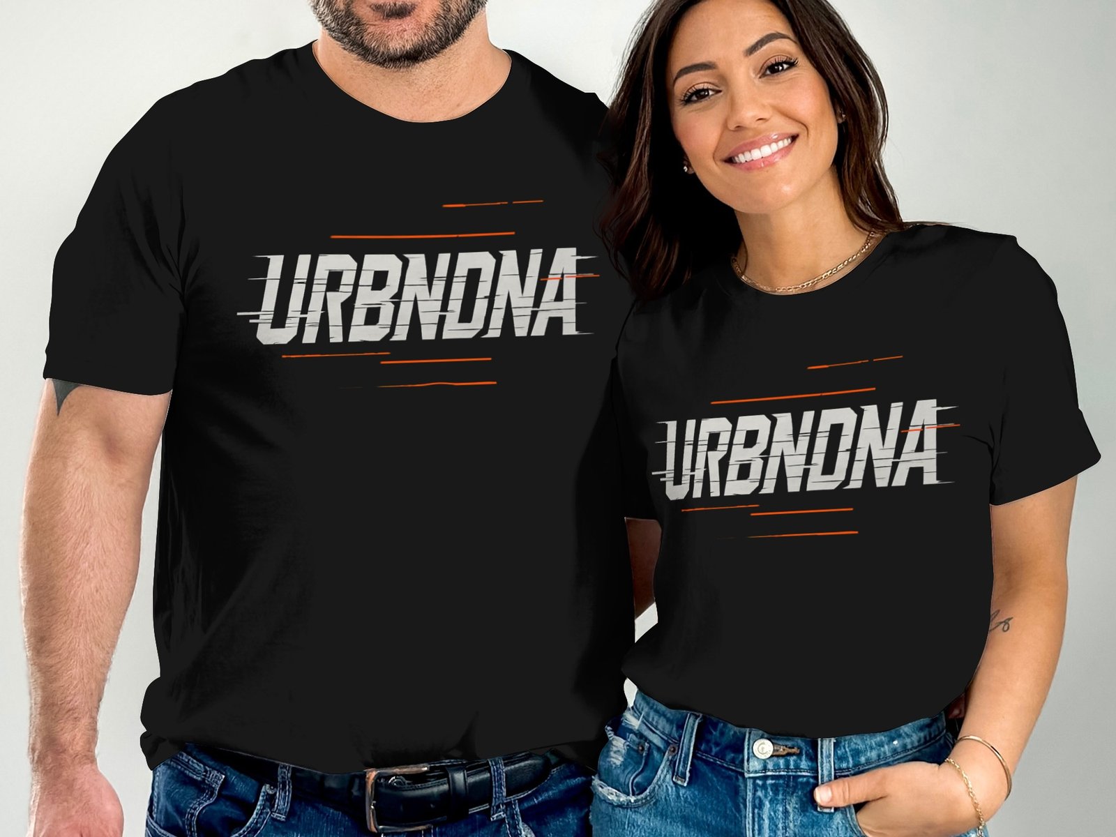 Get this unique URBNDNA text art design. Bold text with a distressed effect and orange stripes. A great way to show off your individual style. Order today!